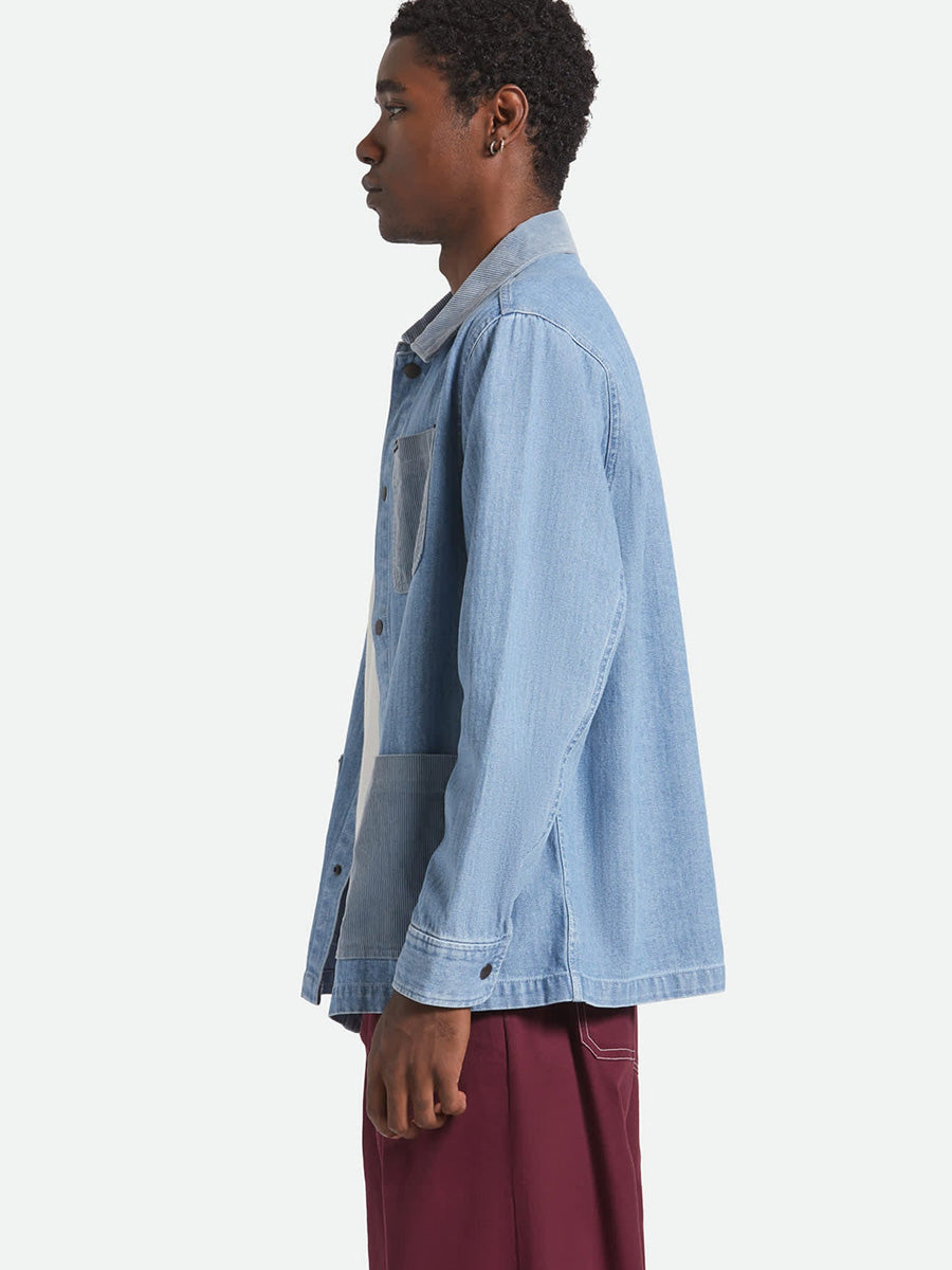 BRIXTON HERRINGBONE LW CHORE COAT - LIGHT WASH DENIM HERRINGBONE
