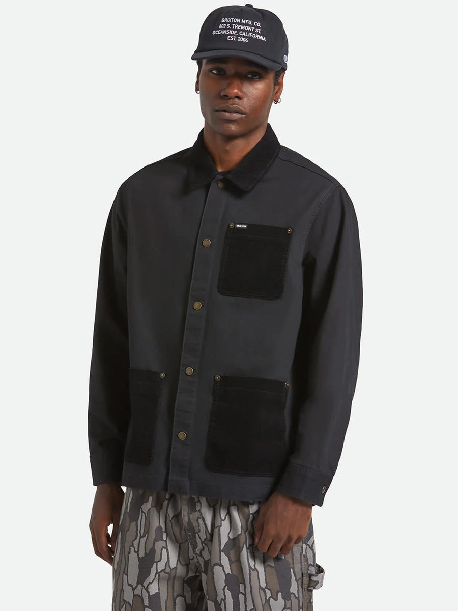 BRIXTON HERRINGBONE LW CHORE COAT - BLACK HERRINGBONE