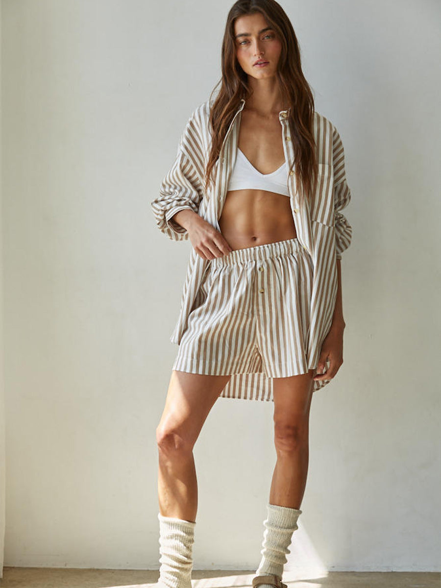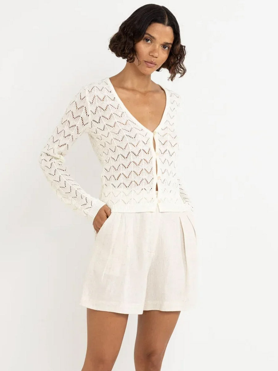 STRIPED KNIT CARDIGAN - NATURAL/BLACK