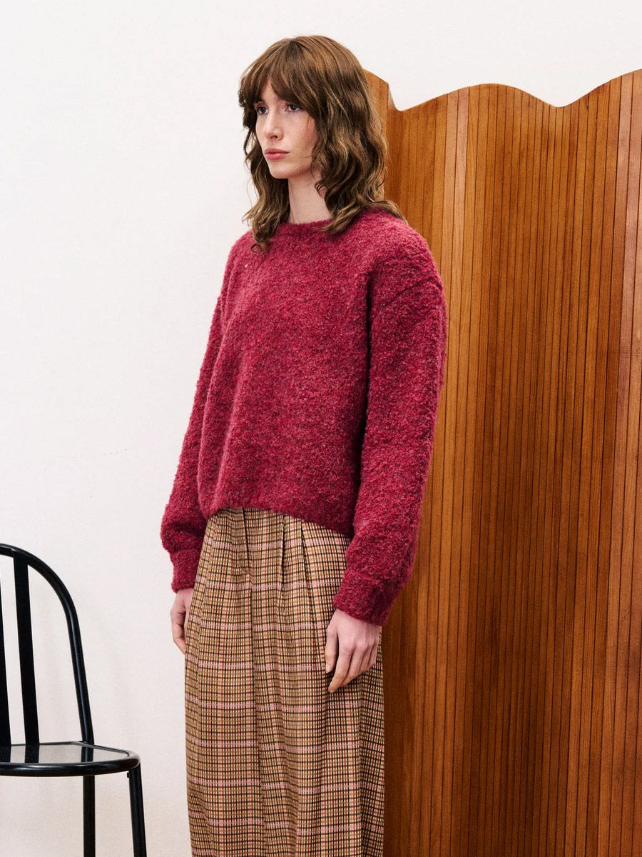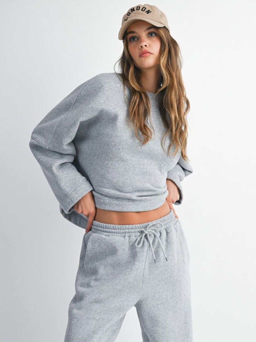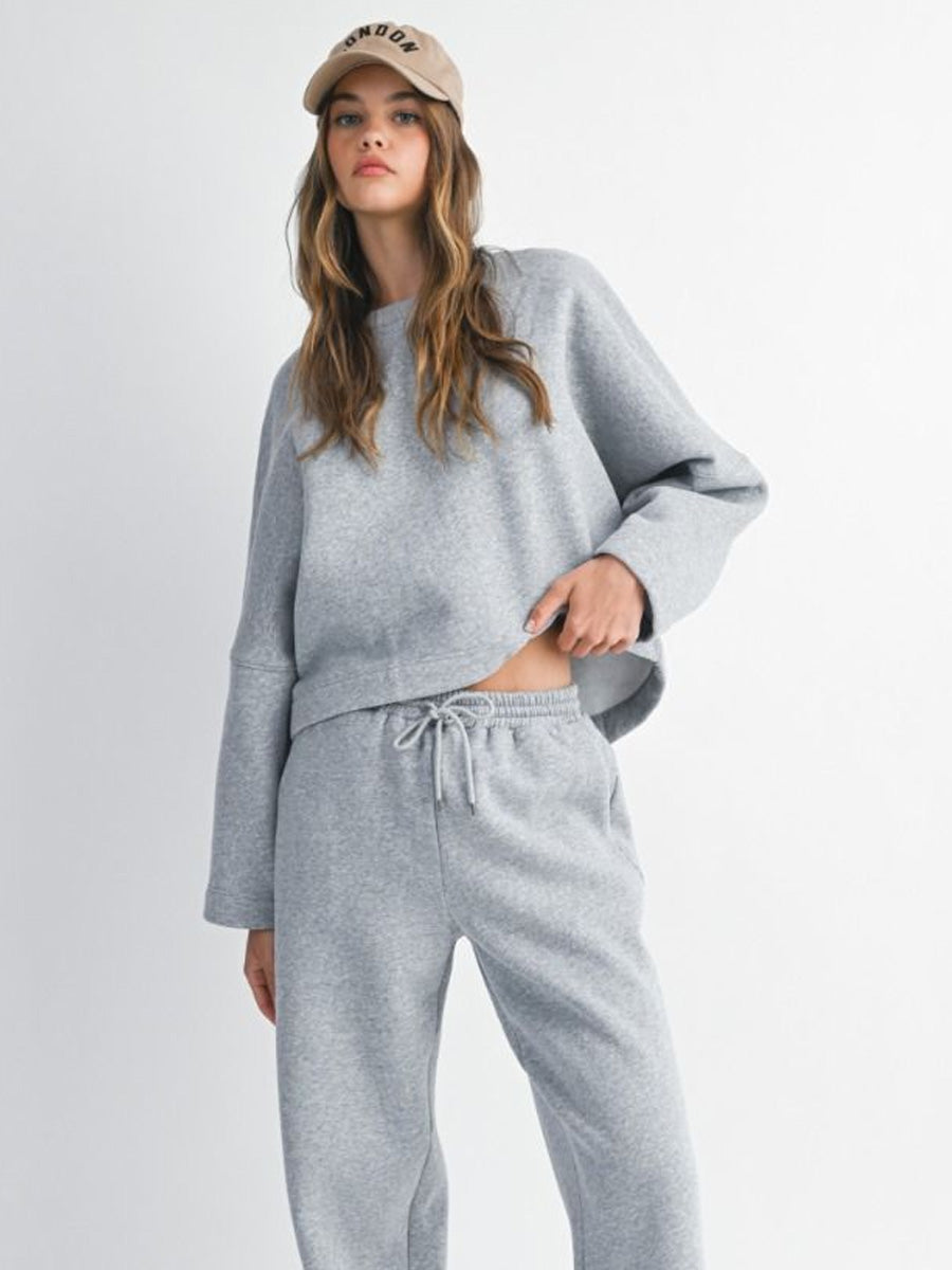 KNIT SWEATER WITH ROLLED ROUND NECK - HEATHER GREY