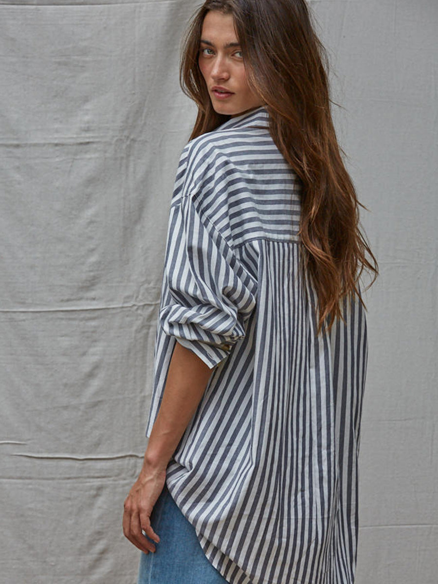 POLO COLLARED COLOUR BLOCK SHIRT - NAVY
