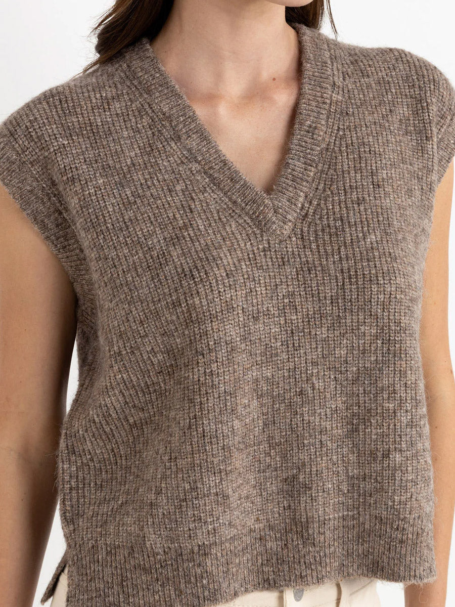 KNIT SIDE SLIT TURTLENECK SWEATER - COFFEE