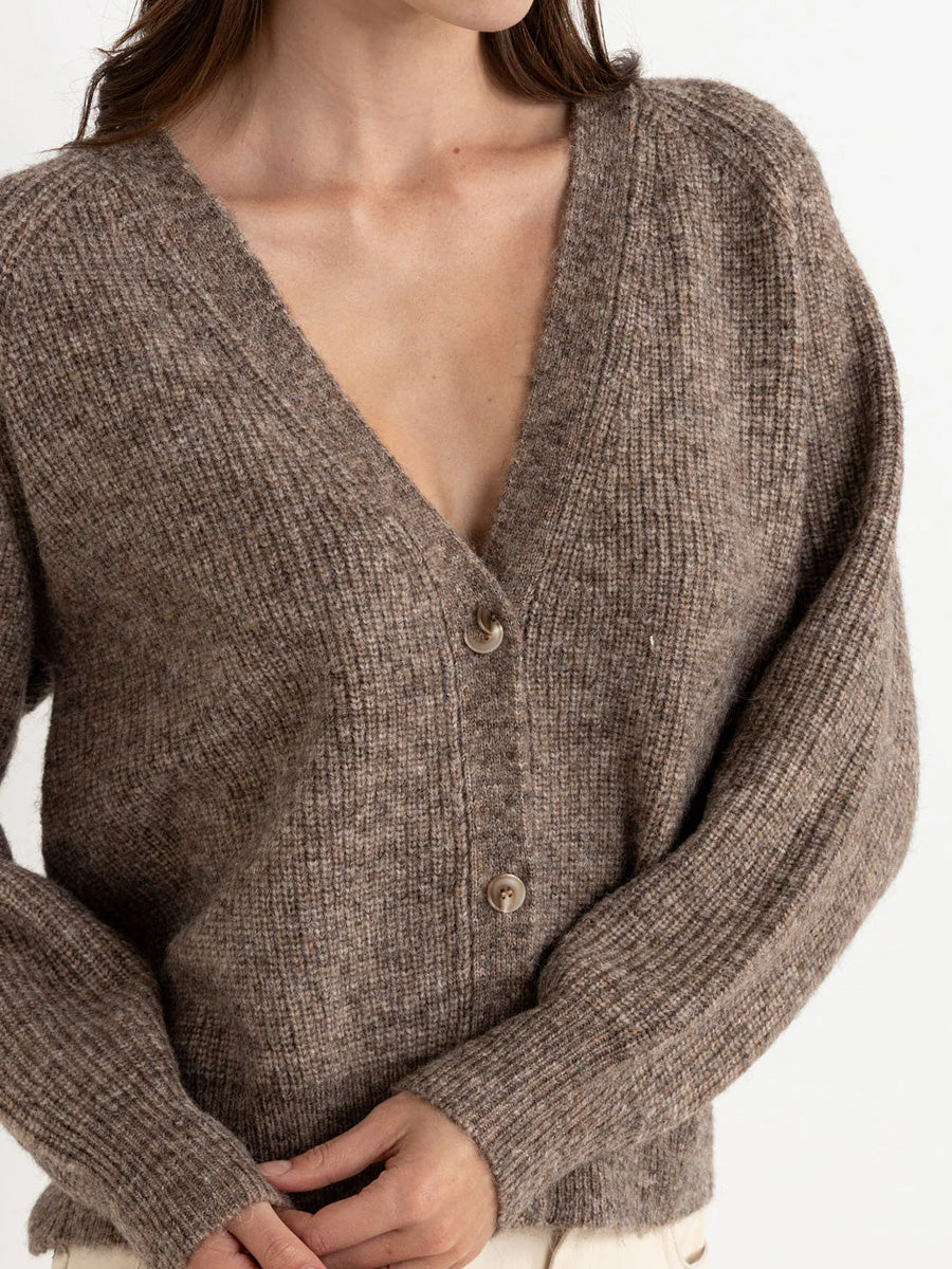 ROUND NECK BUTTON FRONT CARDIGAN - RED