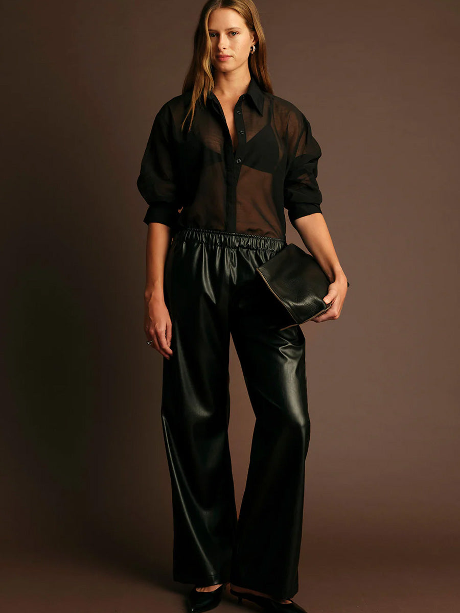 WOVEN RAYON TENCEL SCOOP NECK BLOUSE - NATURAL