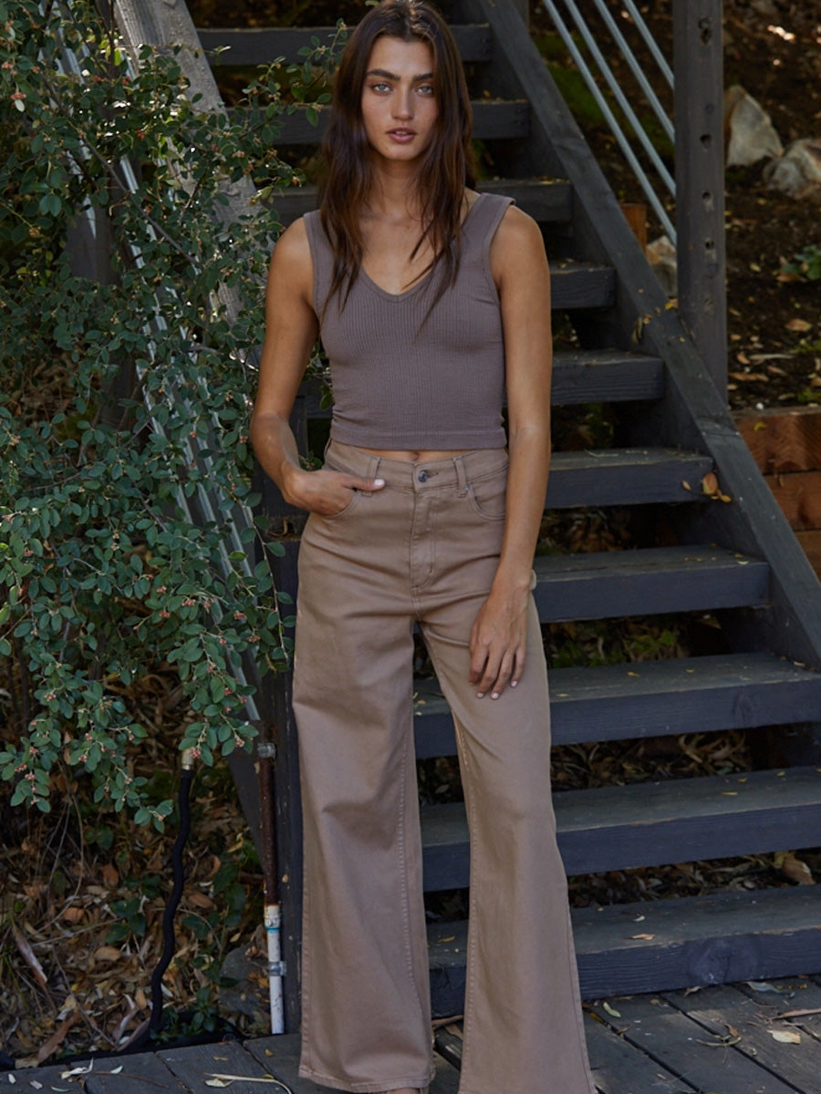 KNIT RIBBED SWEATER BRALETTE TOP - CHARCOAL