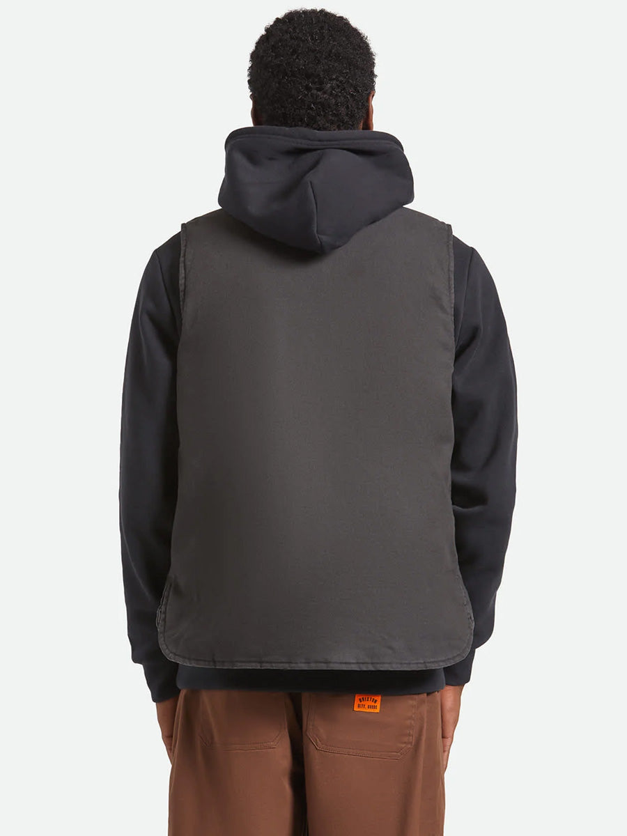 The Builders Abraham Vest by Brixton is a rugged essential with a smart twist. Crafted from durable stretch canvas with a quilted nylon lining, it reverses to reveal reflective detailing for added visibility when you need it most. Reinforced seams and a water-resistant finish keep you protected—on the job or off the grid.