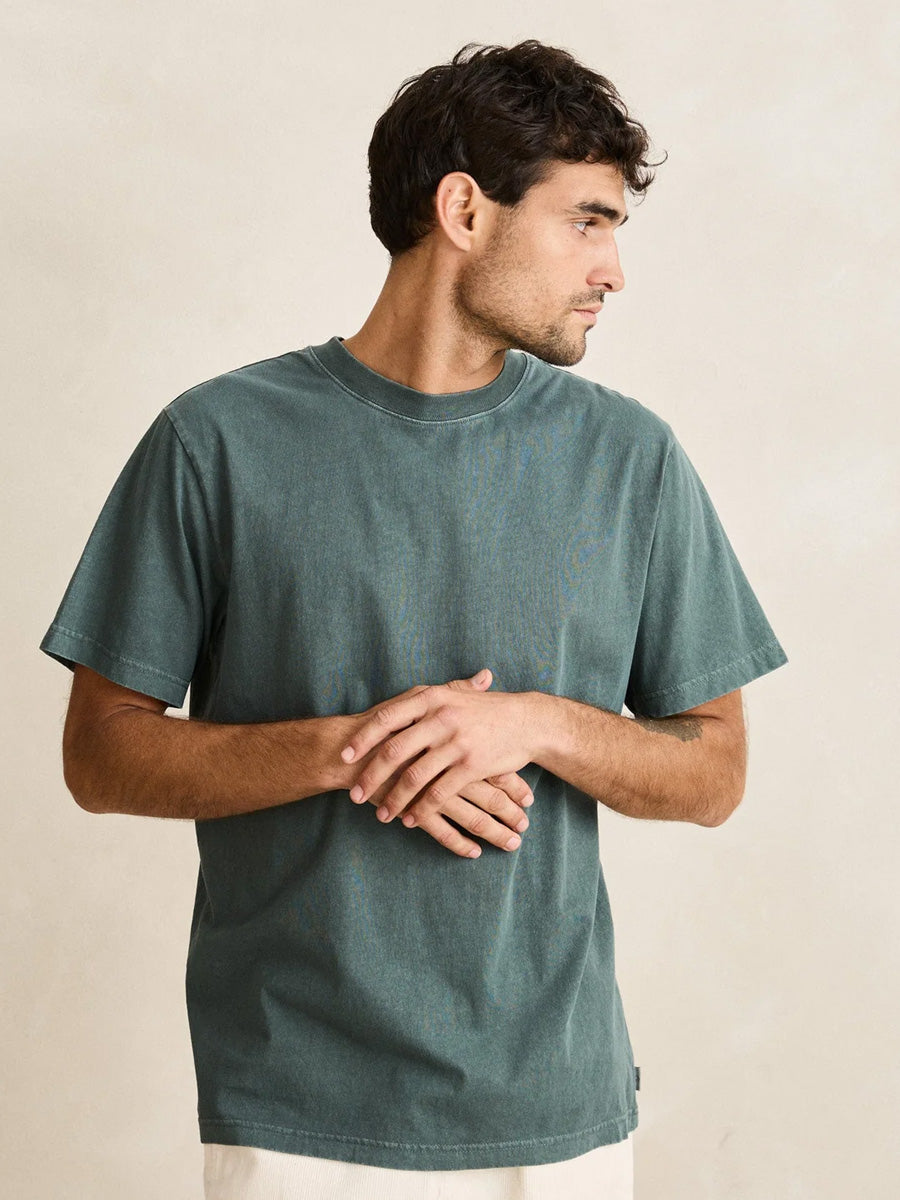 The Classic Vintage Tee by Rhythm delivers easygoing style with a lived-in edge. Garment dyed and vintage washed for that perfectly worn-in feel, this everyday essential in Silver Pine pairs effortlessly with denim or shorts for a relaxed, timeless look.